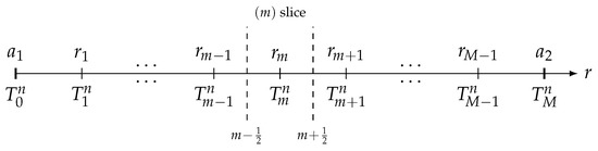 where . The domain is spatially discretized into M slices of equal thickness (see Figure 5).