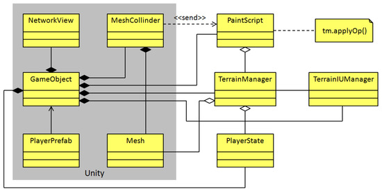 Likewise, when a collaborator interacts with Terrain Mesh by touch events, this component sends editing operation messages to Data Sharing. Thus, via this component, the editing operations are transmitted to all users and locally applied on the Terrain Data Structure by Terrain Modeling, using information provided by Collaborators State, such as the selected editing operation, and the brush strength, smoothness, and radius. Terrain Mesh is also updated in real-time by the Terrain Modeling component.
