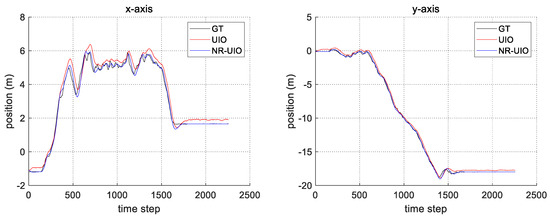 The comparison of the estimated position in x- and y-axes with groundtruth.