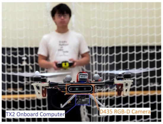 To perform a surveillance mission, a camera that acts as optical sensor is essential. Hence, the main component of the vision-based system is an Intel RealSense D435 stereo camera for visual sensing and depth acquisition as it is proven to have light weight, wide FoV with a global shutter for moving camera motion, and high depth accuracy and stability. Besides, we employed a powerful GPU for embedded systems, the Jetson TX2 onboard computer to process deep learning-based algorithms on small-scale quadrotor UAV platform. The deployed flight controller is a Pixhawk 4 and an external VICON Mocap system is utilized for indoor visual localization. Moreover, the framework is supported by the robot operation system (ROS), using the MAVROS package to communicate PX4 flight controller and planner node at the onboard computer. Figure 1 shows the prototype of the proposed system.