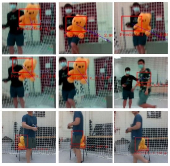 We utilized the YOLOv4-Tiny framework as it possesses a good trade-off between speed and accuracy. Nevertheless, the higher FPS also indicates that the accuracy has been, to some extent, yielded. Furthermore, as both the states of the target object and the quadrotor are dynamic, the pose estimation based on Section 4 is considered insufficiently robust. In a surveillance mission, it is not guaranteed that the target object could always be captured in the FoV, as there might be false positive or false negative results; and occasionally, partial or full occlusion might also occur. In particular, although severe occlusions might not be resolved with such a method, it is deemed that the proposed method would suffice to deal with occlusions that occurred within a short duration of time. To address the above issues, we utilized the Kalman filter to increase the tracking performance.