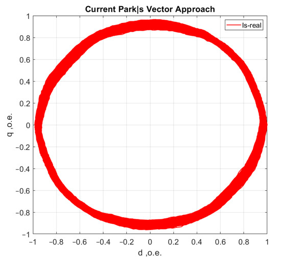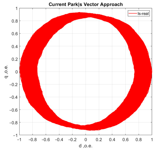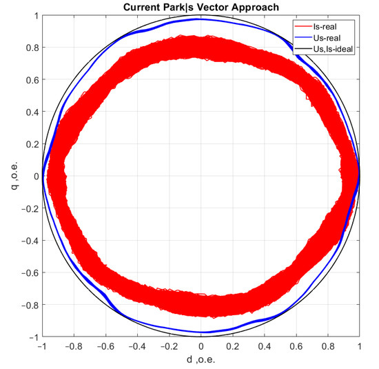 According to Equation (5), the generalized vector in the complex plane will describe a trajectory—the hodograph. The distortion of the real current vector trajectory with respect to the reference one is observed.