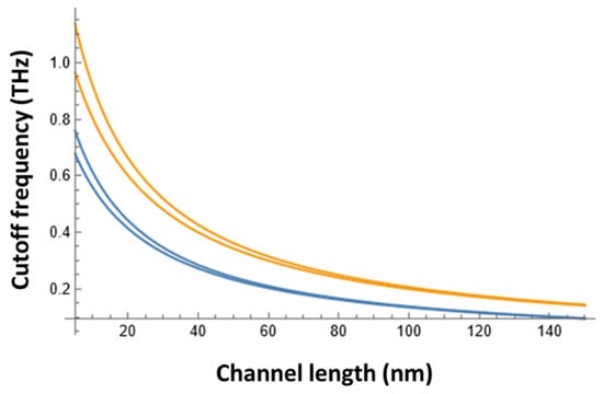 Figure 4 shows dependence of the cutoff frequency on the channel length for vs = 105 m/s and vs = 1.5 × 105 m/s with and without accounting for the electron momentum relaxation time. As seen, Si TeraFETs could be modulated at sub-THz frequency, enabling their application for the 300 GHz band 6G communication.