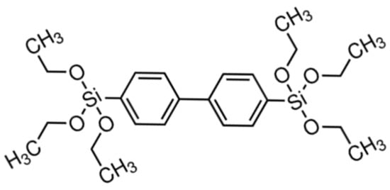 The precursor used for the synthesis of the hybrid film was bis(triethoxysilyl)biphenyl polysilsesquioxanes (TEPS), whose molecular structure is depicted in Figure 2.