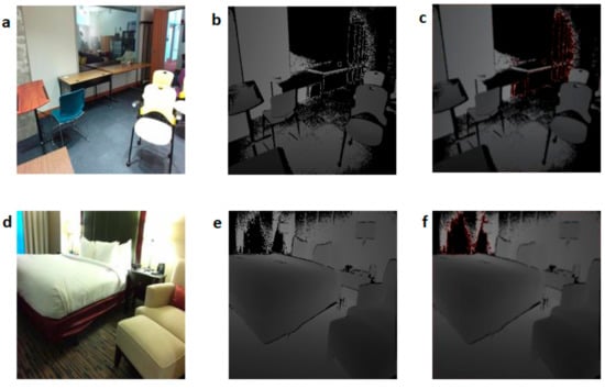 - Silberman, N.; Hoiem, D.; Kohli, P.; Fergus, R. Indoor segmentation and support inference from RGBD images. In Computer Vision—ECCV 2012; Springer: Berlin/Heidelberg, Germany, 2012; pp. 746–760. [Google Scholar]