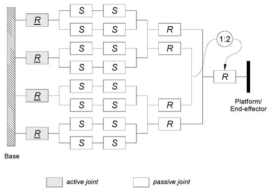 - Company, O.; Krut, S.; Pierrot, F. Internal singularity analysis of a class of lower mobility parallel manipulators with articulated traveling plate. IEEE Trans. Robot. 2006, 22, 1–11. [Google Scholar] [CrossRef]