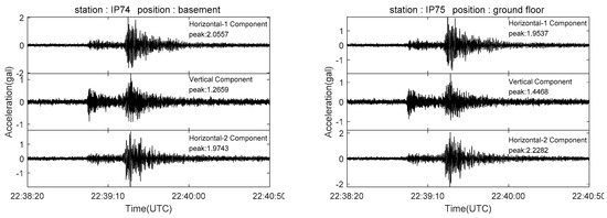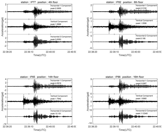 Seismograms from the Tangshan M5.1 earthquake that occurred at UTC 22:38:00, 11 July 2020. These seismograms were recorded on different floors of Beijing’s Building Monitoring Network. The hypocentral depth of the earthquake was 10 km. The building was 191 km away from the epicenter. The sensor’s sampling rate was 200 Hz. Additionally, the data were filtered by a bandpass filter of 0.1–20 Hz (the seismogram data for this study were provided by Beijing Earthquake Agency).