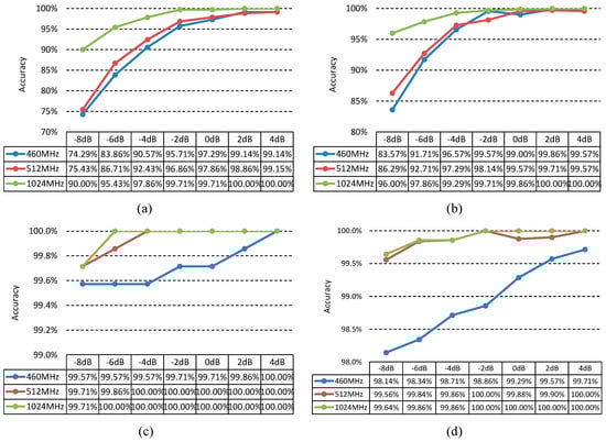 The recognition results in detail for Figure 6a–d are shown in Table A1, Table A2, Table A3 and Table A4, respectively.
