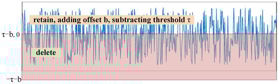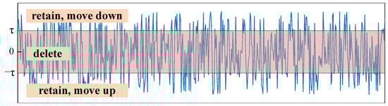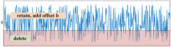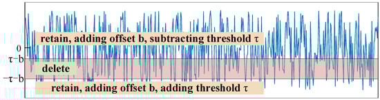 The soft thresholding function becomes . The feature values are first shifted up by , and then feature values in the threshold interval are set to 0, as shown Figure 13: