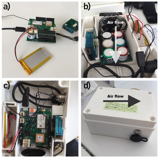 - Castell, N.; Dauge, F.R.; Schneider, P.; Vogt, M.; Lerner, U.; Fishbain, B.; Broday, D.; Bartonova, A. Can commercial low-cost sensor platforms contribute to air quality monitoring and exposure estimates? Environ. Int. 2017, 99, 293–302. [Google Scholar] [CrossRef] [PubMed]