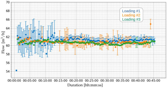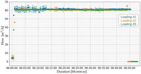 Water has been used as the circulating fluid, as it is it is cheaper than oil and its physical–chemical parameters are well known in the literature. For each motor speed, 100 complete transit time measurements were acquired for each of the 12 trajectories. Means and standard deviations were calculated from the measurements taken, as well as the uncertainties associated with the measurement.
