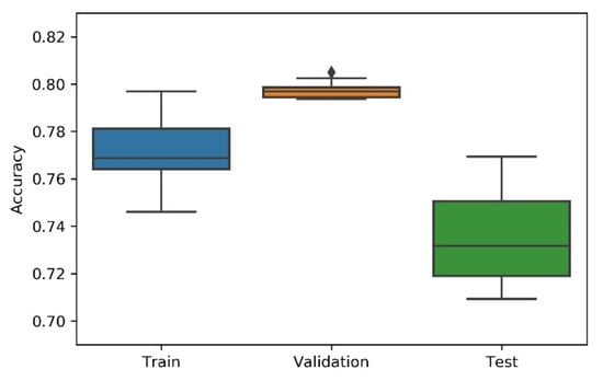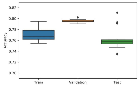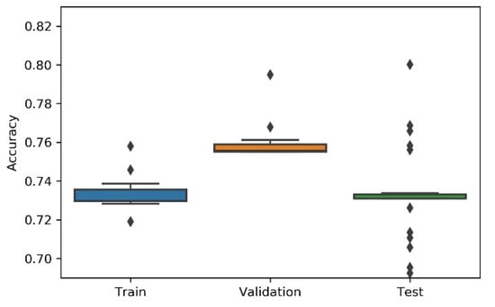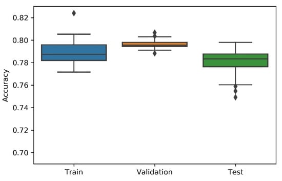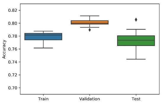 - The results of the box plot analysis are confirmed by comparing the “most consistent model” for each approach. Approach B shows the smallest deviation in the validation and test subsets with accuracies of 0.7960/0.7980 (%), followed by Approach A1 with 0.7934/0.7903 (%). The highest deviation is presented by A2, followed closely by A4.