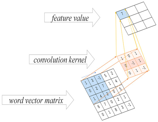 After generating a two-dimensional matrix representation of the text, the result is input to the convolutional layer, and the convolutional kernel is used to extract semantic features from the training data. Given (1) denotes the window vector-matrix from the -th word to the -th word in the word sequence. (2) A convolution kernel matrix with the aim of acting the convolution kernel on successive word vectors is used to produce an output result.