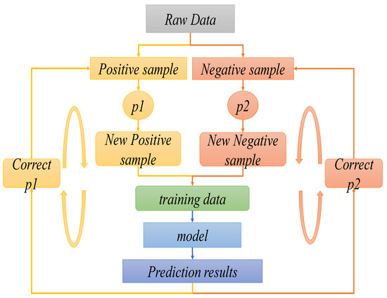 | Input: is the multi-label data set. where is the total number of labels, NSCLC has four stages, so , the labels to be trained are , the number of iterations is and the size of the training data block for each iteration is . Output: The prediction model . Step 1: For any label , the co-occurrence frequency of the small sample pathological stage label and is calculated, as shown in Equation (4). Then, the parameters of the training model for the large sample case dataset are selected and saved according to the label corresponding to the maximum value, which is used as the initialization value for the small sample pathological period prediction model. where is a binary function that labels each case sample of NSCLC patients, and the labeling value is 1 if and have appeared in the same case sample, otherwise the labeling value is 0, as shown in Equation (5). The sampling probabilities of positive samples are regulized, where is the sum of all positive sample sampling probabilities, as shown in Equations (13) and (14). |
