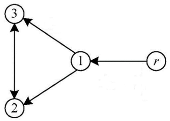 As shown in [,,], when the network topology of the multi-robot system contains a directed spanning tree, the rank of the Laplacian matrix L is n–1, zero is a simple eigenvalue of L with associated vector  and all other eigenvalues are positive, and the consensus is reached asymptotically for the system