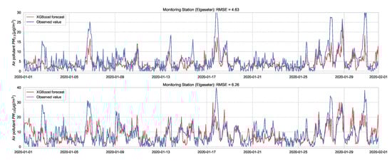 PM-value regression using the XGBoost model over one month in one representative monitoring station.