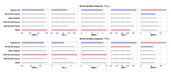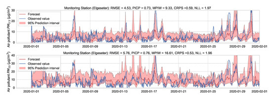 The rest of this paper is organized as follows: In Section 2, we outline the related work in uncertainty estimation and air quality forecasting. We then define the problem setup and introduce non-probabilistic baselines and evaluation metrics in Section 3. In Section 4, we present deep probabilistic models applied to the air quality forecast, describe their training, evaluation, and how to improve their uncertainty estimate. We close with a comparative analysis to compare the selected models in Section 5 and a conclusion in Section 6. Code and dataset are available at https://github.com/Abdulmajid-Murad/deep_probabilistic_forecast (accessed on 27 November 2021).