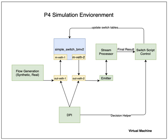In this experimental study, we have used a P4 simulation environment which was discussed above and presented in Figure 6. The following items describe each component of our experimental simulation environment in detail: