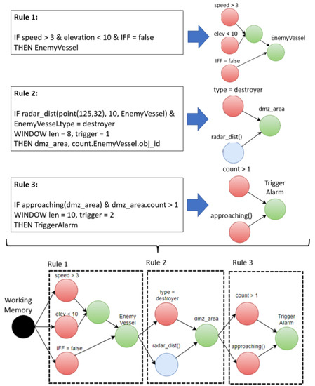 - Forgy, C.L. Rete: A fast algorithm for the many patterns/many object pattern match. Readings in Artificial Intelligence and Databases. Morgan Kaufmann 1989, 547–559. [Google Scholar] [CrossRef]
