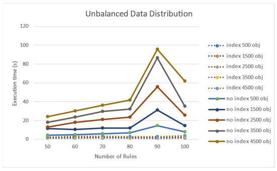 Performance effect of the number of rules on a non-uniform object distribution.