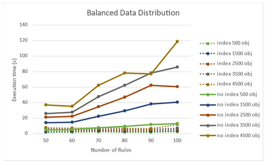 Performance effect of the number of rules on a uniform object distribution.