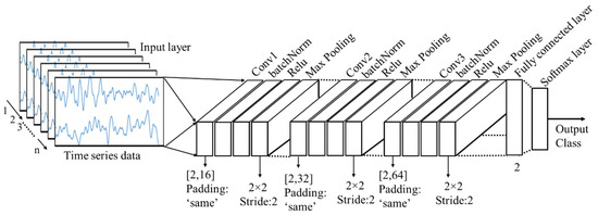 CNN: Most of the existing CNN models consist of a large number of layers; for example, AlexNet has 25 layers, vgg16 has 41 layers, vgg19 has 47 layers and resnet101 even has 347 layers. The greater number of layers means more complex models and it requires more time to process. In this study, a CNN architecture with 16 layers is designed from scratch to classify the cognitive load. It was emphasized to design a CNN model considering a smaller number of layers so that the processing time of the images can be reduced as much as possible. Among the 16 layers, there is one input layer, three convolutional layers, three batch normalization layers, three relu layers, three max-pooling layers, one fully connected layer, one softmax layer and the final layer or output layer. The input layer reads the time series data and passes it into the series of other layers. The design of the CNN architecture and the dimensions of the hyperparameters are presented below in Figure 5.
