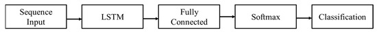 LSTM: Another deep learning network called LSTM is used to classify the driver’s cognitive load using time series eye movement data. The LSTM network in this study is a type of recurrent neural network (RNN) and it consists of five layers. The essential layers of an LSTM network are a sequence input layer and an LSTM layer. The time-series data are formed into sequences which are fed into the input layer of the network. Figure 6 demonstrates the architecture of a simple LSTM network for time series classification of cognitive load.