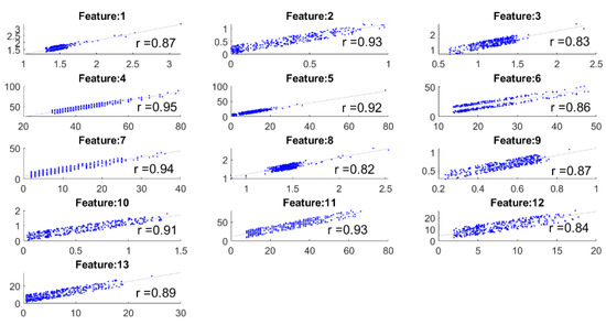 The highest value of r is 0.95 and the lowest value is 0.82 which indicates that there is a good positive relation between features of the systems.