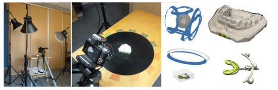 - Stuani, V.T.; Ferreira, R.; Manfredi, G.G.; Cardoso, M.V.; Sant’Ana, A.C. Photogrammetry as an alternative for acquiring digital dental models: A proof of concept. Med. Hypothese 2019, 128, 43–49. [Google Scholar] [CrossRef] [PubMed]