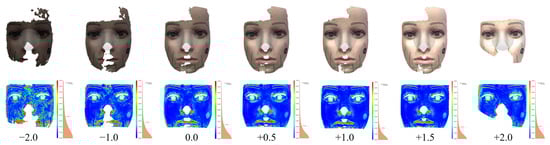 The applications of optical 3D facial scanners include a 3D analysis of facial features based on anatomical landmarks [8]; an analysis of facial symmetry [8,9]; a 3D analysis of facial deformations, as well as planning orthodontic treatment [10] and surgical interventions; and the evaluation of treatment results [11,12]. Statistical research is under way with the goal of developing anthropometric growth models of healthy children and models of faces of patients whose conditions lead to craniofacial deformations [13,14,15]. Growth models can be used in diagnostic systems for cases of cleft palate [15], fetal alcohol syndrome (FAS) [16] or DiGeorge syndrome, and others [14]. Facial scanners are increasingly being used in face-recognition systems [17], with results that allow a correct identification rate sometimes in excess of 99% [18].