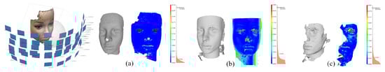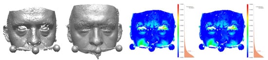 Doctors’ usual answer to the question about accuracy requirements was 1 mm for cephalometric analysis and 0.5 mm for plaster models, and these assumptions were checked when testing the implemented solutions [25,26]. Similar requirements for the accuracy of face scanning apply during intraoperative imaging [27], where a threshold below 1.0 mm was deemed acceptable and below 0.5 mm preferable. When specialists consult each other, it is estimated that verbal explanations of the geometry of the patient’s condition allows a mental image of it to be formed with an accuracy of about 2 mm.