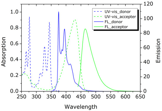 Figure 2. The overlap between the respective spectra indicates that the energy transition occurs when the donor molecule is excited.