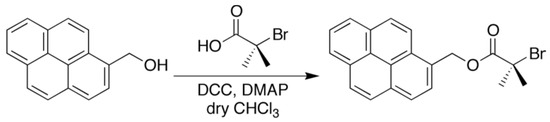 2-Bromoisobutylic acid (203.5 mg, 1.22 mmol), 1-pyrenemethanol (232.0 mg, 1.00 mmol), and 4-dimethylaminopyridine (12.1 mg, 0.10 mmol) were placed in a test tube and dissolved with dry CHCl