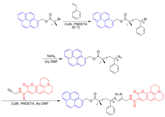 2.2.3. Preparation of Polystyrene Bearing FRET Pair by ATRP-Click Approach