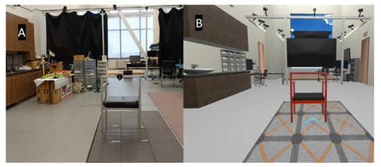 Representation of the environment in (A) real world and, (B) Virtual Reality.