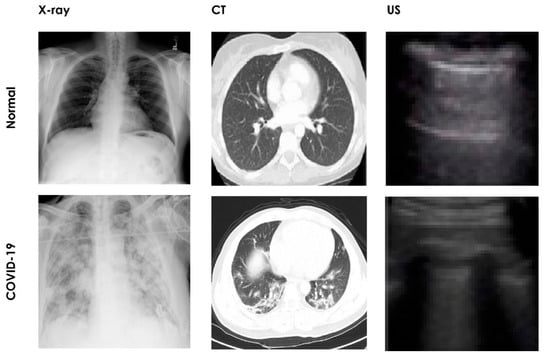 Disease confirmation and the severity of the disease can be determined by nasal/throat swab, several serological tests, and imaging modalities. Reverse transcription polymerase chain reaction (RT-PCR) remains the best molecular method in the diagnosis of the disease []. However, as in the case of other diagnostic methods, RT-PCR is not error-free. It is time consuming, expensive, and requires manual effort. In order to judge the diagnostic test results accurately, expert clinicians are required to read them. The correct interpretation of the test results requires a high level of clinical expertise, as the data may vary significantly from person to person []. Moreover, the availability of test kits is limited, especially in rural geographical regions, and, if available, the quality of the kits may not be guaranteed. Moreover, persons can experience discomfort—slight pain and irritation—during the nasal swab test. Using image modalities such as X-rays or CT scans, it is possible to obtain a quick result for critical situations, even before receiving RT-PCR test results.