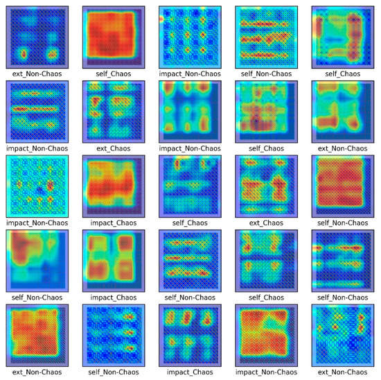 Figure 10 shows the heat map using CAM. The heat map shows the spatial importance for each class, and red is the most important part. As shown in the heat map, when the iteration of the Rossler model is non-chaos, the characteristics of the image tend to be uniform and symmetrical, and the chaos is irregular.