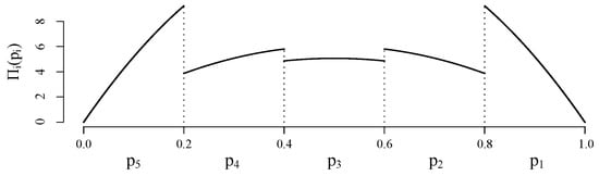 As can be seen, the only difference between Expressions (5) and (12) lies in , where for the random probabilities case, the expected probabilities are incorporated in the formula instead of the point probabilities . For , and , expressions similar to those presented in (4), (7) and (10) can be written as