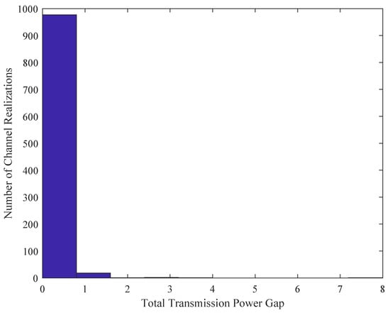 Statistic histogram of the power gap between Algorithm 2 and the exhaustive search.