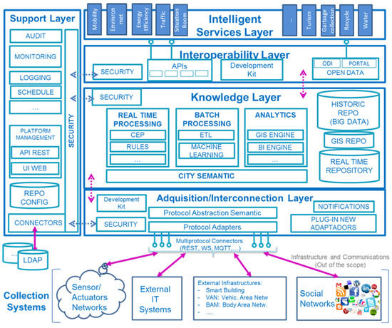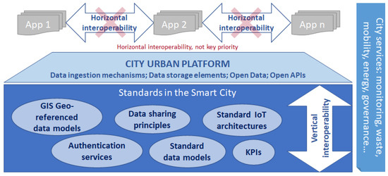 - Hernández, J.; García, R.; Schonowski, J.; Atlan, D.; Chanson, G.; Ruohomäki, T. Interoperable Open Specifications Framework for the Implementation of Standardized Urban Platforms. Sensors 2020, 20, 2402. [Google Scholar] [CrossRef] [Green Version]