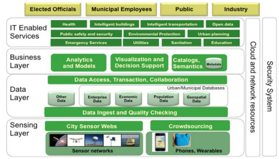 - Pellicer, S.; Santa, G.; Bleda, A.; Maestre, R.; Jara, A.; Skarmeta, A.G. A global perspective of smart cities: A survey. In Proceedings of the IEEE 7th International Conference on Innovative Mobile and Internet Services in Ubiquitous Computing (IMIS), Fukuoka, Japan, 6–8 July 2013; pp. 439–444. [Google Scholar]