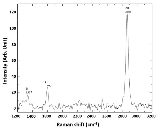 Raman spectrum of CVD-grown graphene on copper substrate.