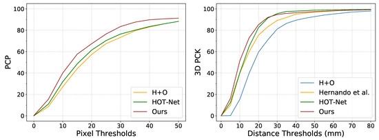 Comparison with state-of-the-art methods on both FPHA-HO and HO-3D using the AUC scores (Higher is better) on 3D PCK curve and PCP curve.