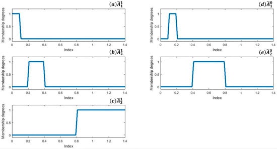 It is observed that and are not fuzzy sets. Therefore, and are normalized in Equations (12) and (13):