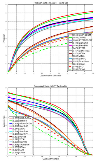 - Fan, H.; Lin, L.; Yang, F.; Chu, P.; Deng, G.; Yu, S.; Bai, H.; Xu, Y.; Liao, C.; Ling, H. Lasot: A high-quality benchmark for large-scale single object tracking. In Proceedings of the IEEE Conference on Computer Vision and Pattern Recognition, Seoul, Korea, 27 October–3 November 2019; pp. 5374–5383. [Google Scholar]