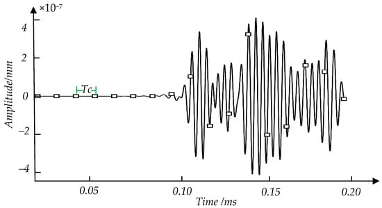 Diagram of the signal divided by Tc (12.5 μs) or L (5 mm), in which the black boxes represent the dividing points. Tc is the time interval between two adjacent dividing points. The vertical axis is the signal amplitude. The horizontal axis is the sampling time of the signal.