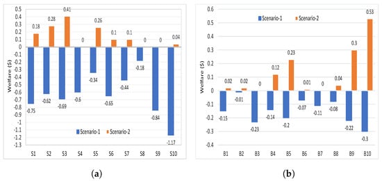 where Equation (4) indicates that the capacity of must be greater than his maximum required energy. The difference between the energy state and energy supply of must be greater than or equal to his minimum energy requirements (Equation (5)). According to , his maximum required energy must be less than or equal to the required energy (Equation (6)). For energy allocation, a discrete-time double auction with average mechanism is proposed to increase buyers’ and sellers’ welfare.