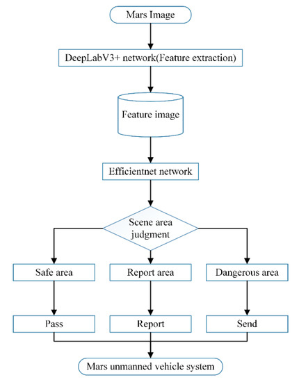 This paper is organized into five sections. After the introduction, Section 2 describes the process of the overall framework for the Mars unmanned vehicle system. In Section 3, the DeepLabV3+/Efficientnet hybrid network is proposed. In Section 4, experimental results are shown. Conclusions are drawn in Section 5.