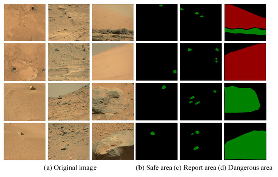 Currently, Mars exploration is full of uncertainties, resulting in the failure of Mars exploration missions. On 22 March 2011, the U.S. rover Spirit fell into quicksand while exploring the surface of Mars. Judgment of the scene area is particularly critical in Mars exploration missions. Therefore, in order to complete the Mars exploration mission, it is necessary to judge the scene area efficiently for safety. Intelligent technology is an effective method to enhance the autonomous ability of the unmanned vehicle system. Deep learning is one such intelligent technology. Due to its high accuracy, deep learning is widely used in unmanned automatic driving and scene area judgment [7,8].