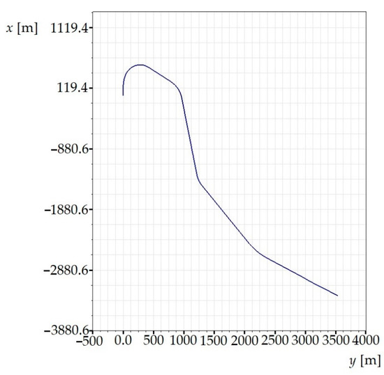 In our research, we have used a model of a real track section. The chosen track model is suitable for performing simulation computations and subsequent evaluations of ride comfort because it includes straight sections as well as sections with curves of various radii, i.e., sections with superelevation ramps and transient sections. The track gauge was 1435 mm, the rail cant 1:40 and the rail head profile UIC60. There parameters are prescribed in the source input file. An illustration of the track model is shown in Figure 8.